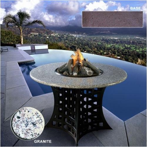 California Outdoor Concepts is a leading designer of unique home furnishings. Dedicated to the idea that each family has a special eye for the things they love our design efforts are directed towards furniture that reflects your individual choices. Because our design and production facilities are located in the sunny climate of Southern California we are afforded the opportunity to experience almost daily the lifestyle that is inherent in our collection. It is our genuine desire to share that lifestyle with each of our clients.29in High Aluminum Table Base Brown base Fire Pit Gas Logs Pebble Granite Finish Top 48in Diameter Liquid Propane Gas